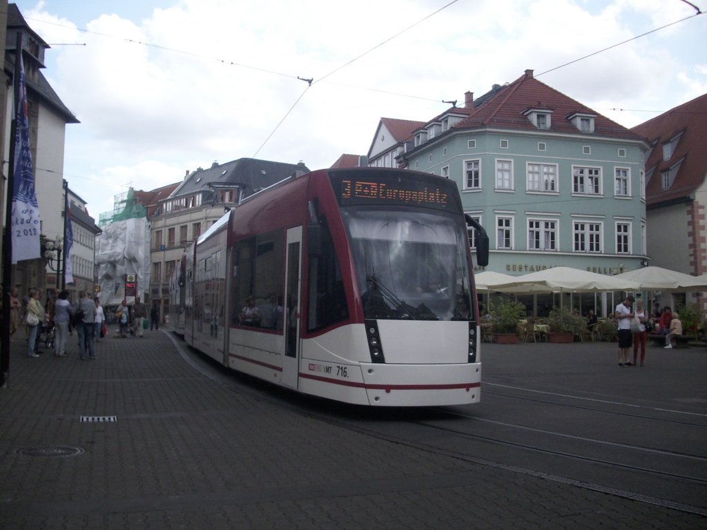 Straßenbahn 716 der Erfurter Verkehrsbetriebe AG (EVAG) in Erfurt.